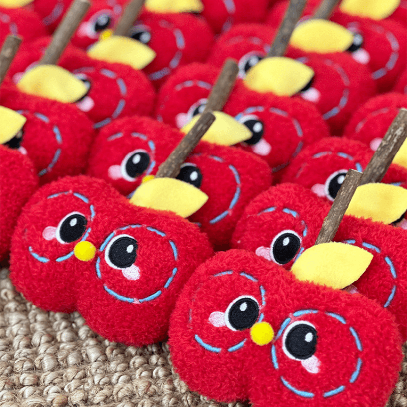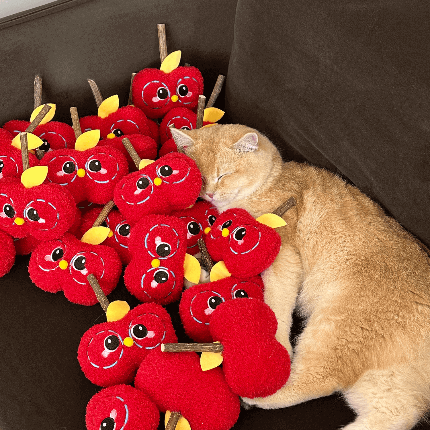 Soft apple-shaped cat chew toy infused with natural silvervine. Pearl velvet fabric and plush cotton filling encourage chewing, ease anxiety, and promote dental health. A fun, safe solo play toy for indoor cats of all sizes.