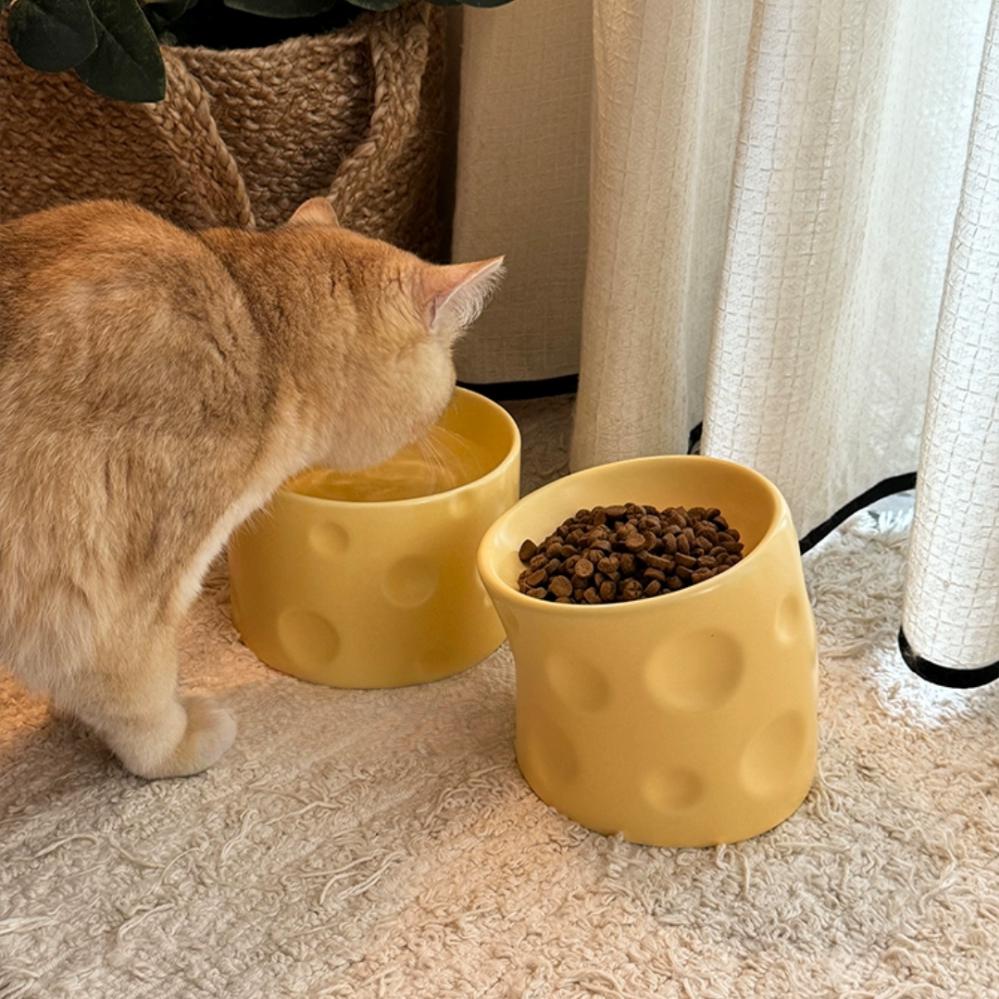 Upgrade your pet’s mealtime with this cheese-shaped ceramic bowl designed for easy eating, better posture, and a fun dining vibe. Ergonomically contoured for cats, small dogs, or other pets—fits head curves, supports healthy posture, and adds fun style. Made of durable ceramic that resists scratches and bacteria. Easy to clean and stylish, too!