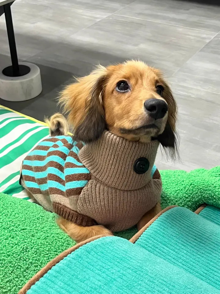 Dachshund Striped Turtleneck Warm Dog Jumper