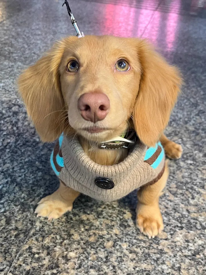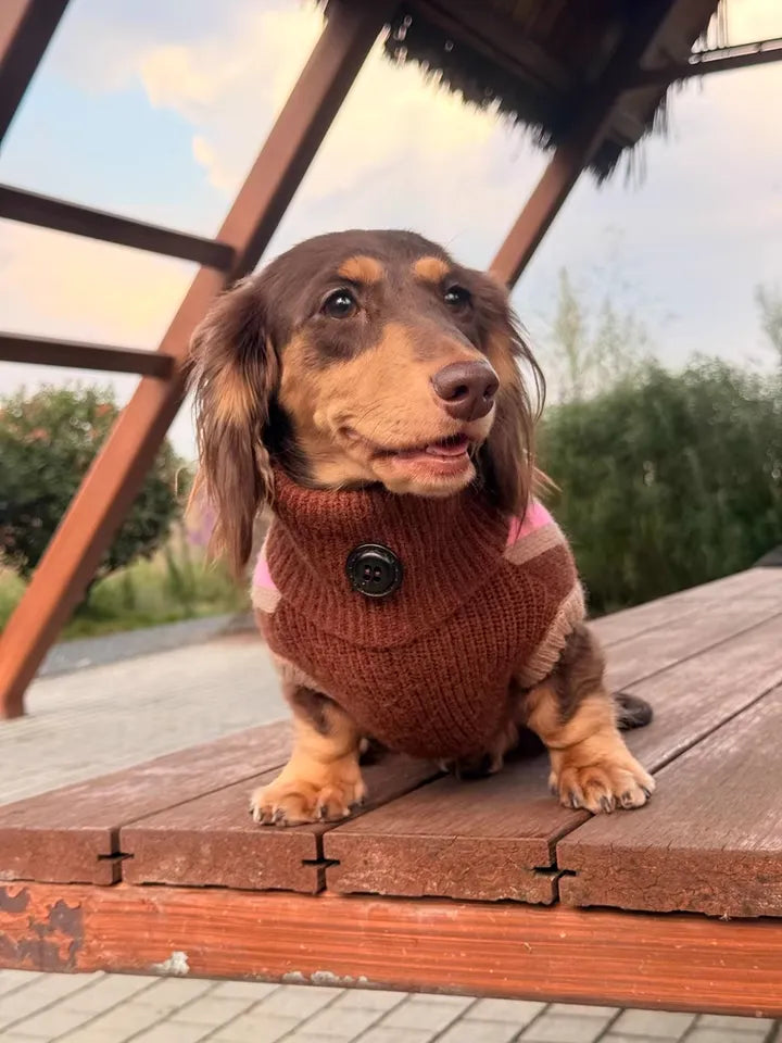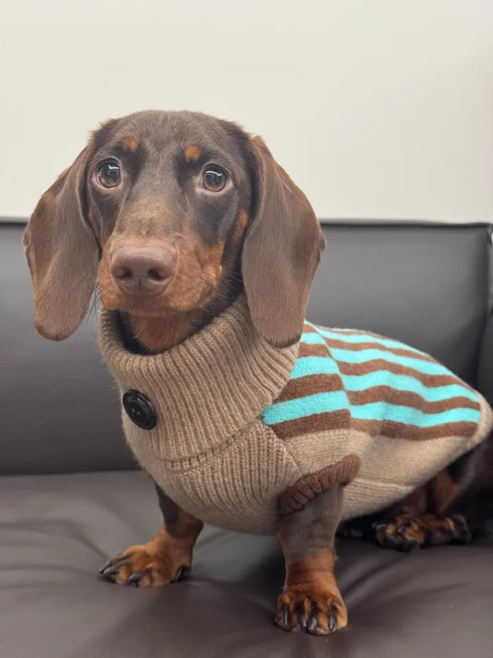 No more cold, shivering walks! Keep your dachshund cozy and stylish with this striped turtleneck fleece jumper crafted from ultra-soft, high-quality arctic fleece. The sweater is easy to wear, excellent warm, cozy all day and perfect for mini dachshunds, it’s ideal for chilly days, outdoor adventures, and festive fun. Make your pup the star of every holiday!