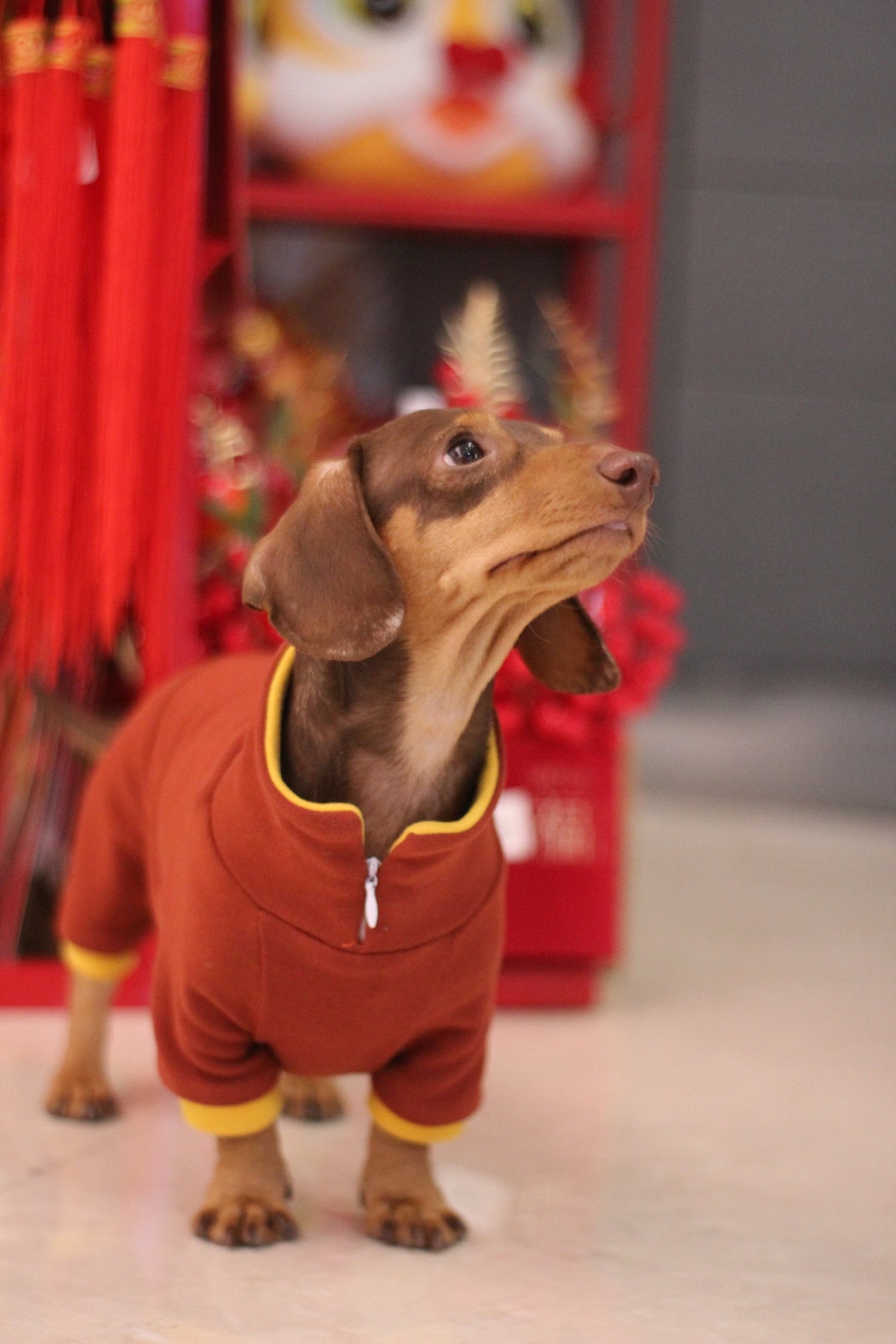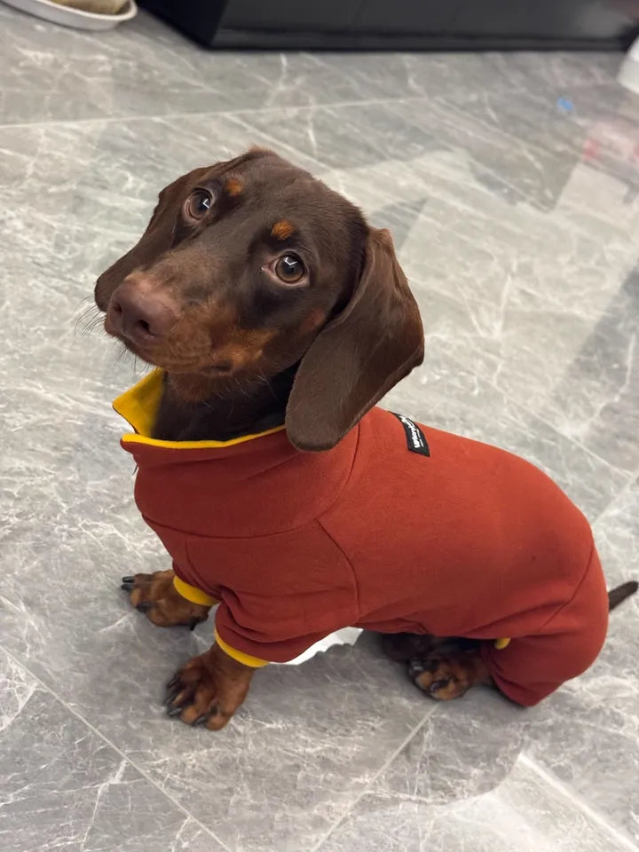 Snuggle your dachshund into cloud-soft comfort with this ultra-stretch, ultra-warm body onesie. Perfect for colder days or indoor lounging, the four-leg design fits mini and long-haired dachshunds comfortably without tightness. Premium elastic fabric feels soothing on sensitive skin, while thoughtful craftsmanship ensures durability, warmth and freedom of movement.