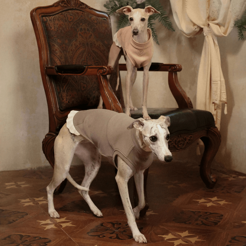 Made from thick double-sided pique fabric, this sleeveless sweatshirt offers both warmth and freedom of movement — perfect for Italian Greyhounds and Whippets.