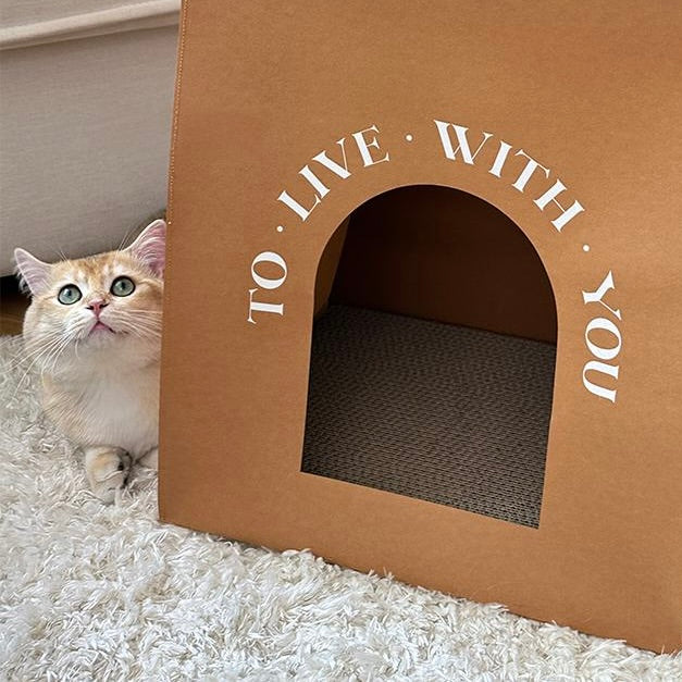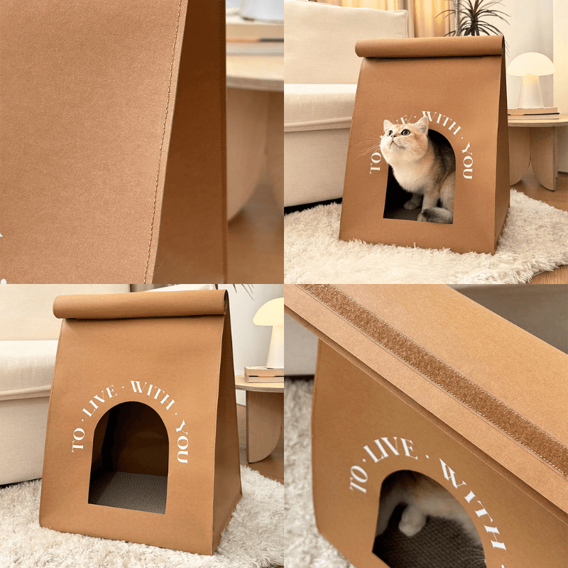 Inspired by cats' beloved cardboard boxes, this dual-function cat house is suitable for all seasons, allowing cats to scratch freely and sleep comfortably. Made with premium eco-kraft paper and replaceable corrugated boards, It ensures comfort for cats and peace of mind for humans.