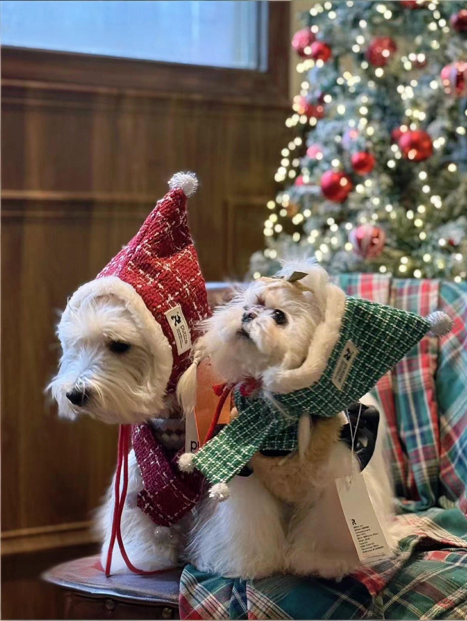 Wrap your pet in festive warmth and style. This two-piece Christmas set features a plush hat and cozy scarf that can be worn together or separately. Soft, lightweight tweed-look fabric, detailed craftsmanship, and a snug, gentle fit bring comfort and holiday charm to every outing. Ideal for gifting, winter walks, and creating joyful Christmas memories with your furry companion.